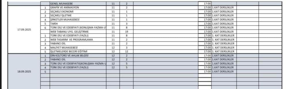 2025 - 2026 Eylül Dönemi Sorumluluk sınav takvimi